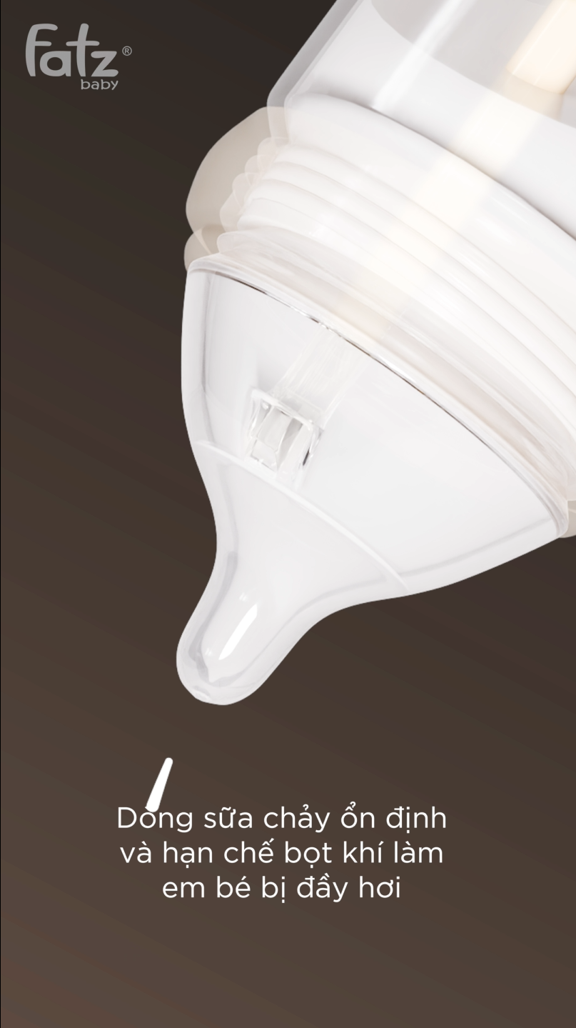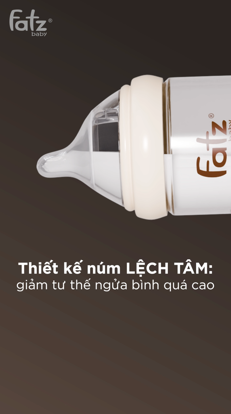 Phần núm ti được thiết kế lệch tâm, giúp bé bú ở tư thế sinh lý tự nhiên hơn. Thiết kế này hạn chế việc phải ngửa đầu quá cao khi bú, từ đó hỗ trợ bảo vệ vùng cổ và giảm nguy cơ sặc sữa. Hình dáng và độ mềm của núm ti cũng được tối ưu để mô phỏng nhịp bú và dòng sữa tự nhiên từ bầu ngực mẹ, giúp bé dễ dàng thích nghi khi chuyển đổi giữa bú mẹ và bú bình.