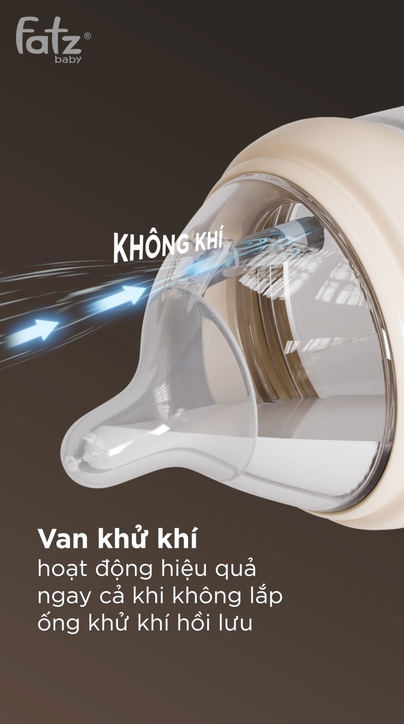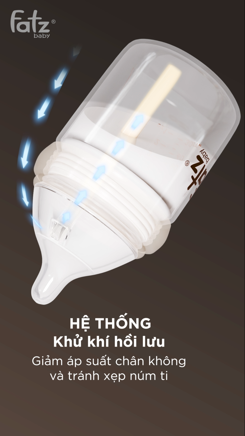 Một trong những điểm nổi bật nhất của Chumpy 2 là hệ thống khử khí hồi lưu tiên tiến. Hệ thống này kết hợp ống dẫn khí hồi lưu và van thông khí một chiều, giúp tách luồng khí ra khỏi dòng sữa trong quá trình bé bú. Không khí được dẫn ngược trở lại phía trên bình thay vì hòa vào sữa, từ đó hạn chế tối đa sự hình thành bọt khí. Khi áp suất trong bình luôn được cân bằng, bé có thể bú nhẹ nhàng và ổn định hơn mà không cần tạo lực hút quá mạnh.