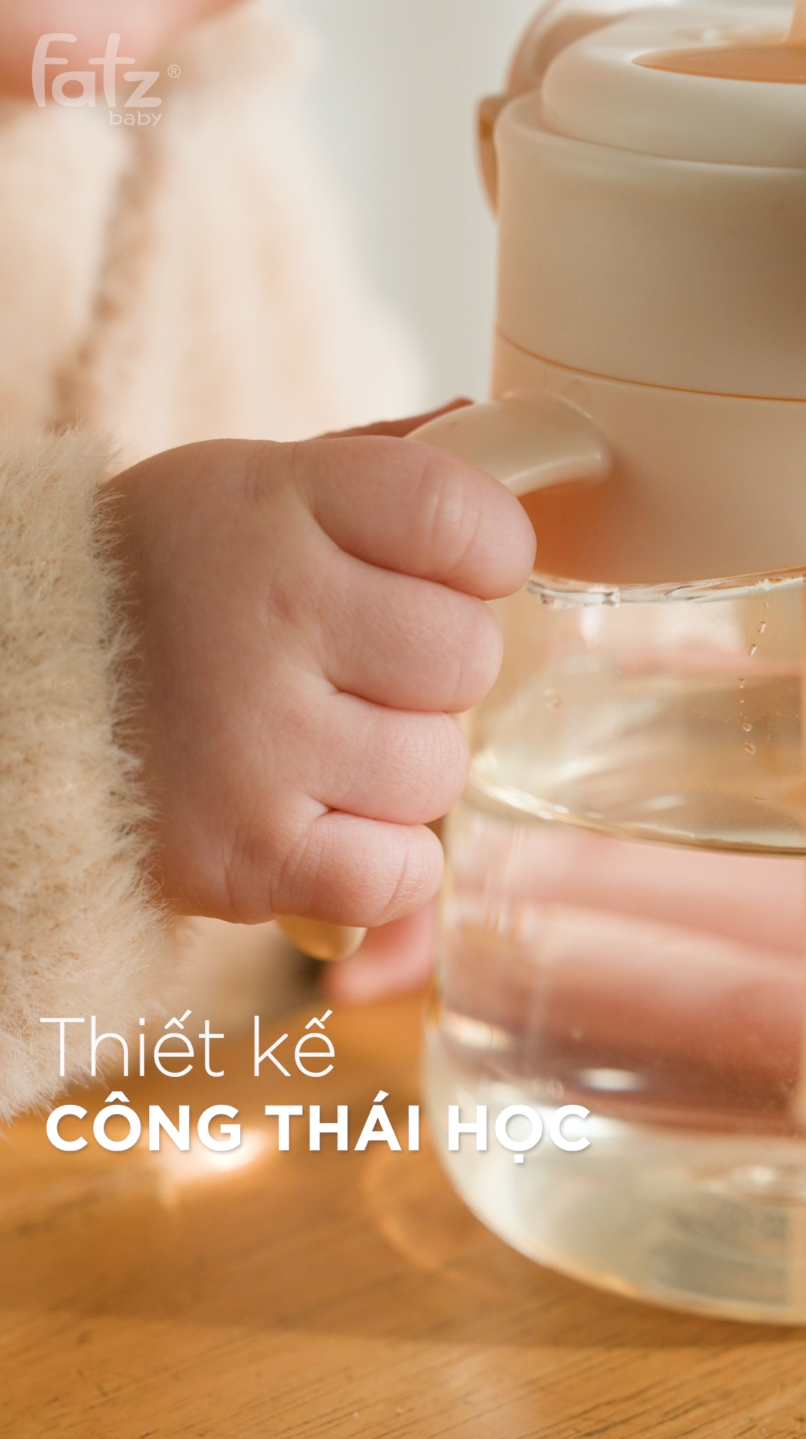 Thiết kế hai tay cầm cân đối giúp bé dễ dàng cầm nắm và kiểm soát bình khi uống. Tay cầm được tạo hình vừa vặn với bàn tay nhỏ, hỗ trợ bé phát triển khả năng phối hợp tay và miệng trong quá trình tập uống.