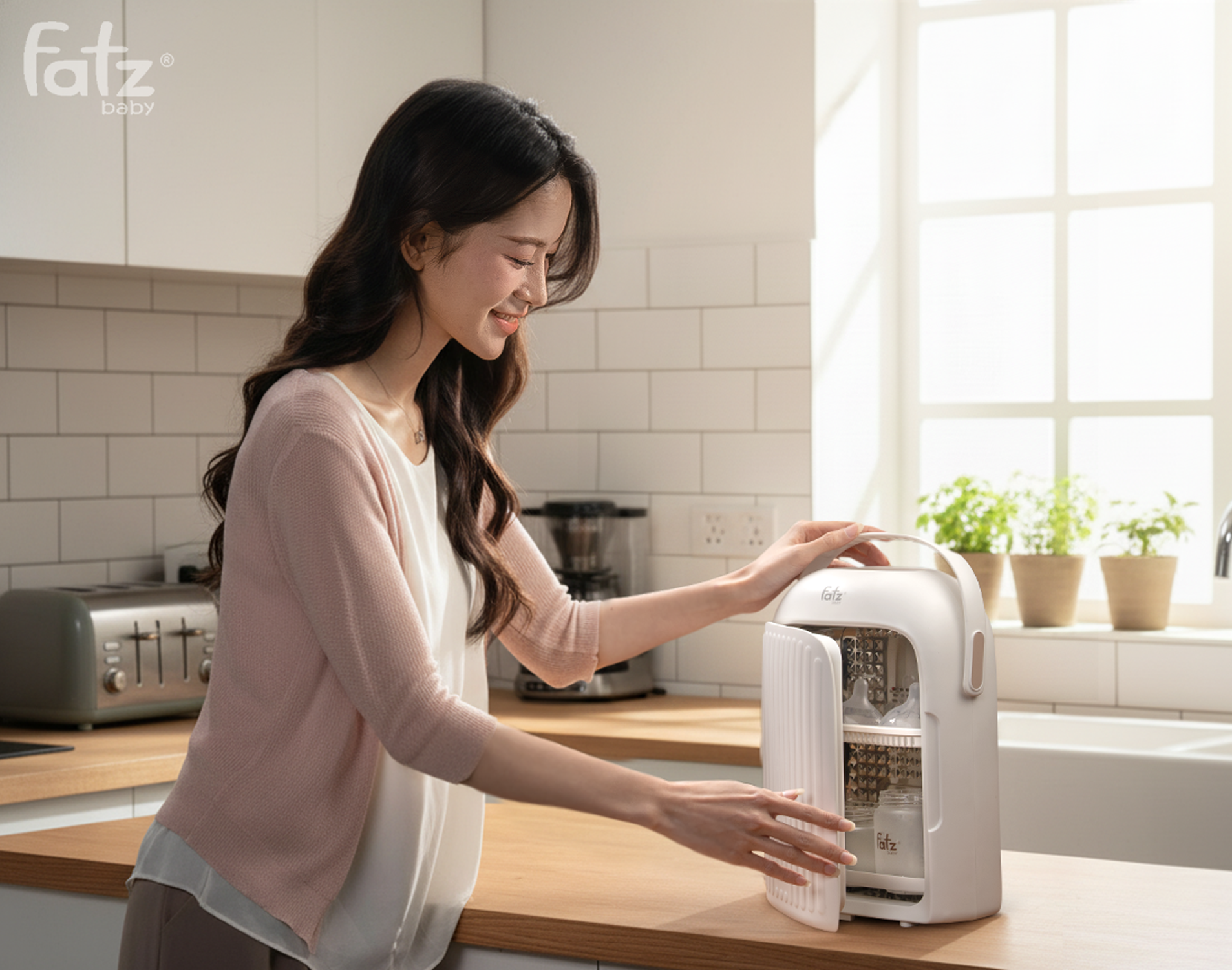 Sau khi hoàn tất tiệt trùng, chức năng sấy khô giúp loại bỏ độ ẩm còn sót lại, hạn chế môi trường thuận lợi cho vi khuẩn tái phát triển. Đồng thời, chế độ bảo quản cho phép duy trì trạng thái vô trùng của vật dụng trong thời gian dài, giúp bố mẹ không cần tiệt trùng lại quá nhiều lần trong ngày, đặc biệt tiện lợi với những gia đình có lịch sinh hoạt bận rộn.