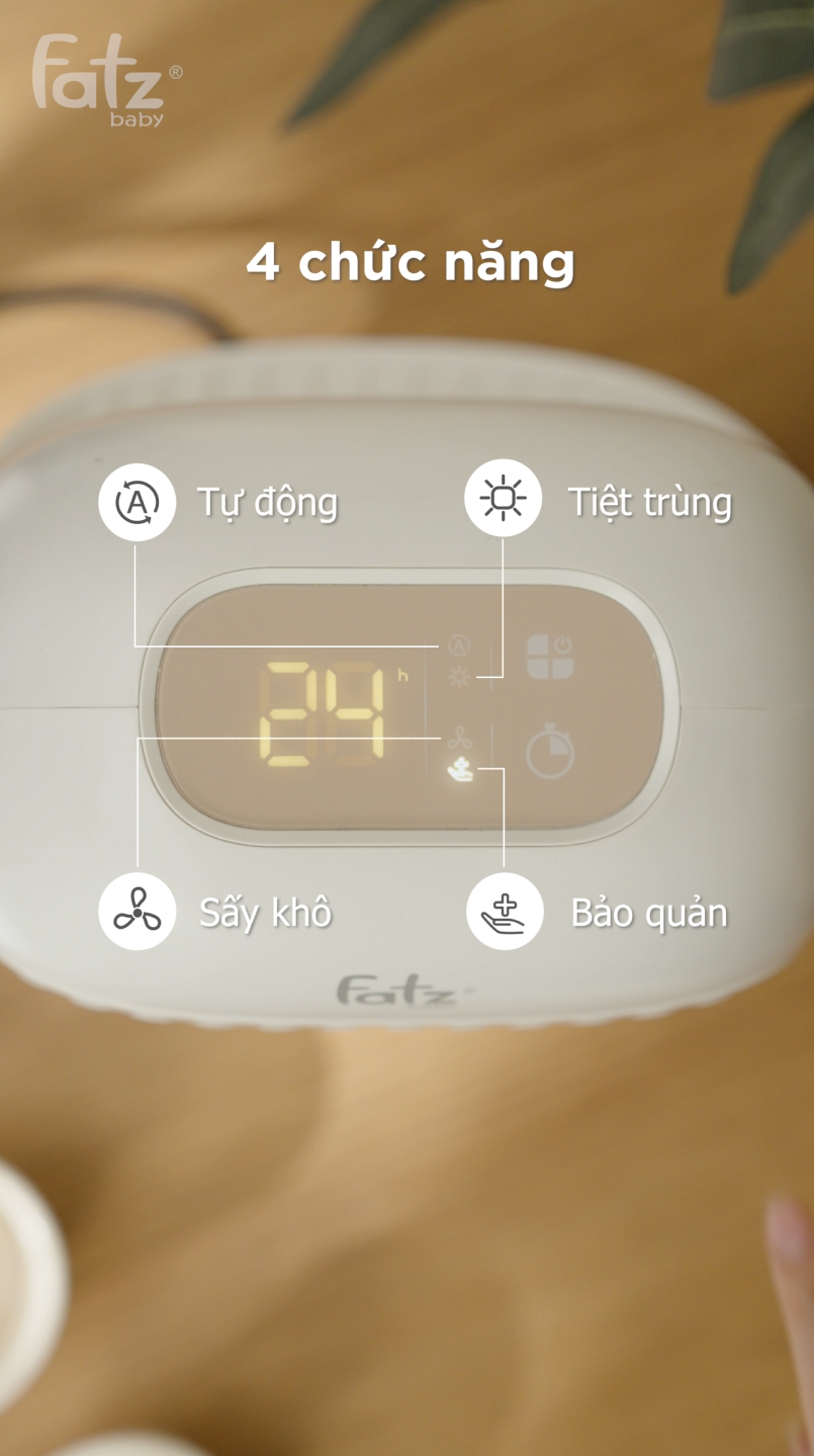 • 4 trong 1: Tự động, Tiệt trùng, Sấy khô và Bảo quản.